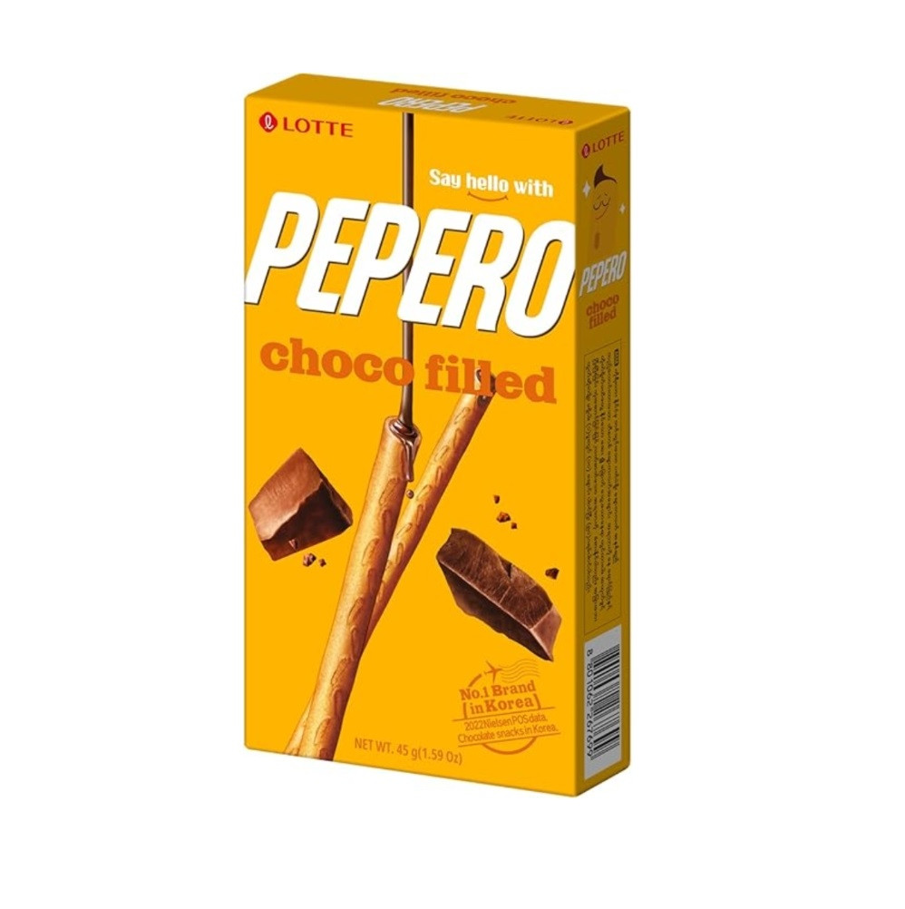 Lotte Pepero Choco Filled 45 gr delicioso pepero que ofrece un suave y cremoso centro de chocolate envuelto en una crujiente capa de galleta. Perfectamente equilibrado y deliciosamente satisfactorio, cada bocado ofrece una rica experiencia de chocolate que seguro te encantará.