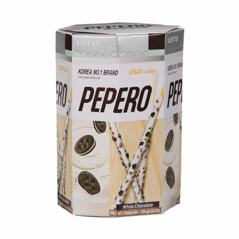 Lotte Pepero Sabor White Cookie 4 Pack de 128 gr son galletas en forma de palitos, cubiertos de chocolate blanco con trozos de galleta. Una deliciosa alternativa a las galletas y chocolates comunes.