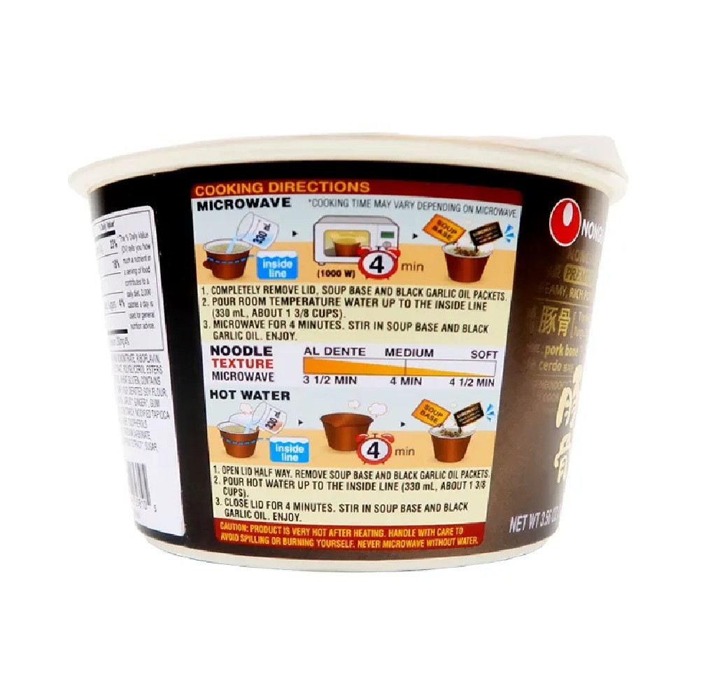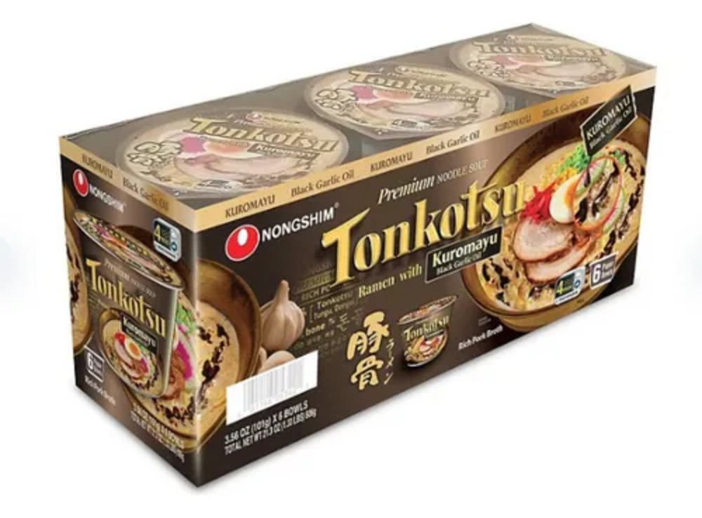 Nongshim Tonkotsu Kuromayu Paquete 6 Piezas De 101gr C/u es un ramen de estilo japonés, su caldo de cerdo tiene una consistencia cremosa. Además contiene kuromayu, un aceite de ajo negro que le brinda un sabor único y lo convierte en una gran experiencia.