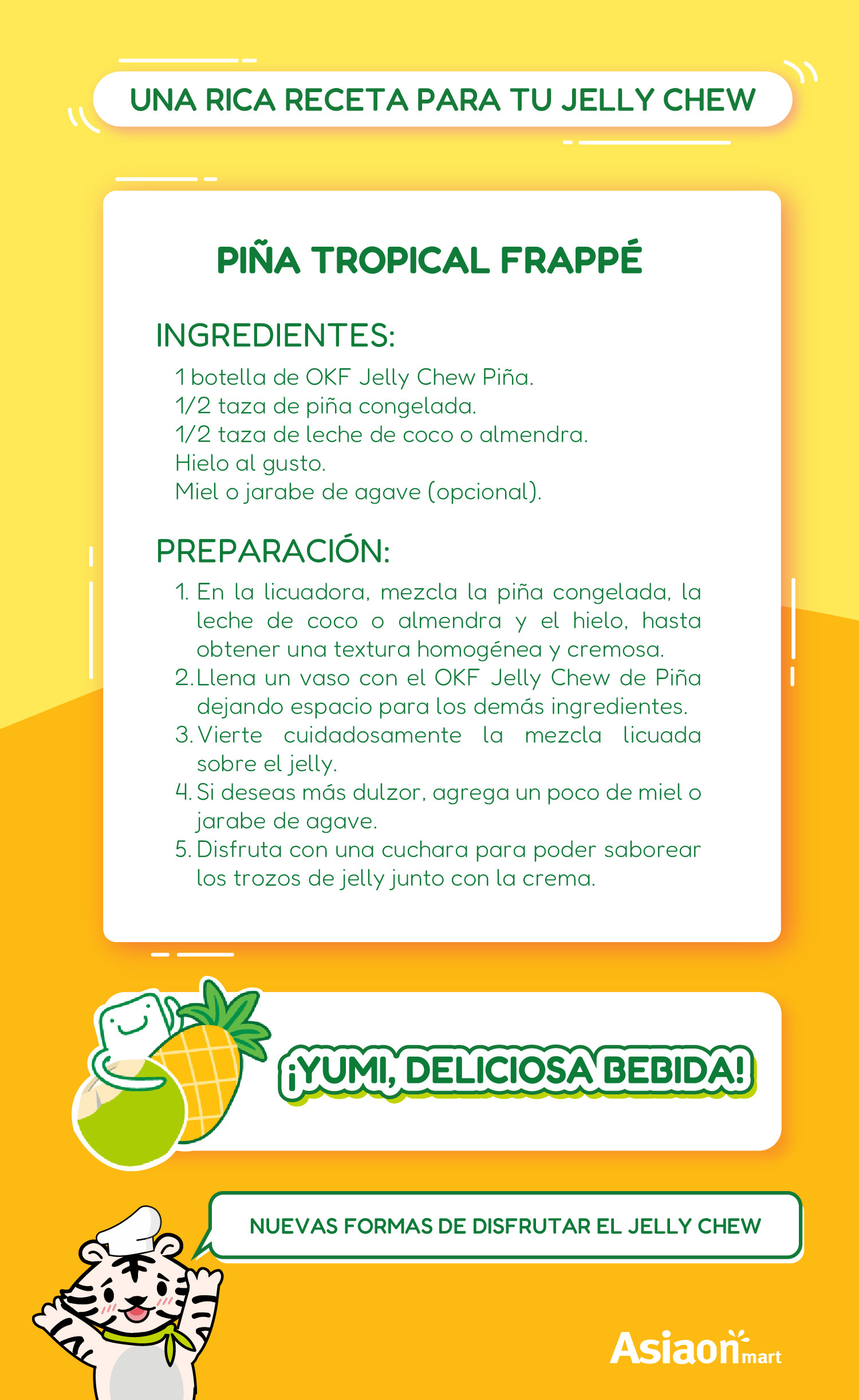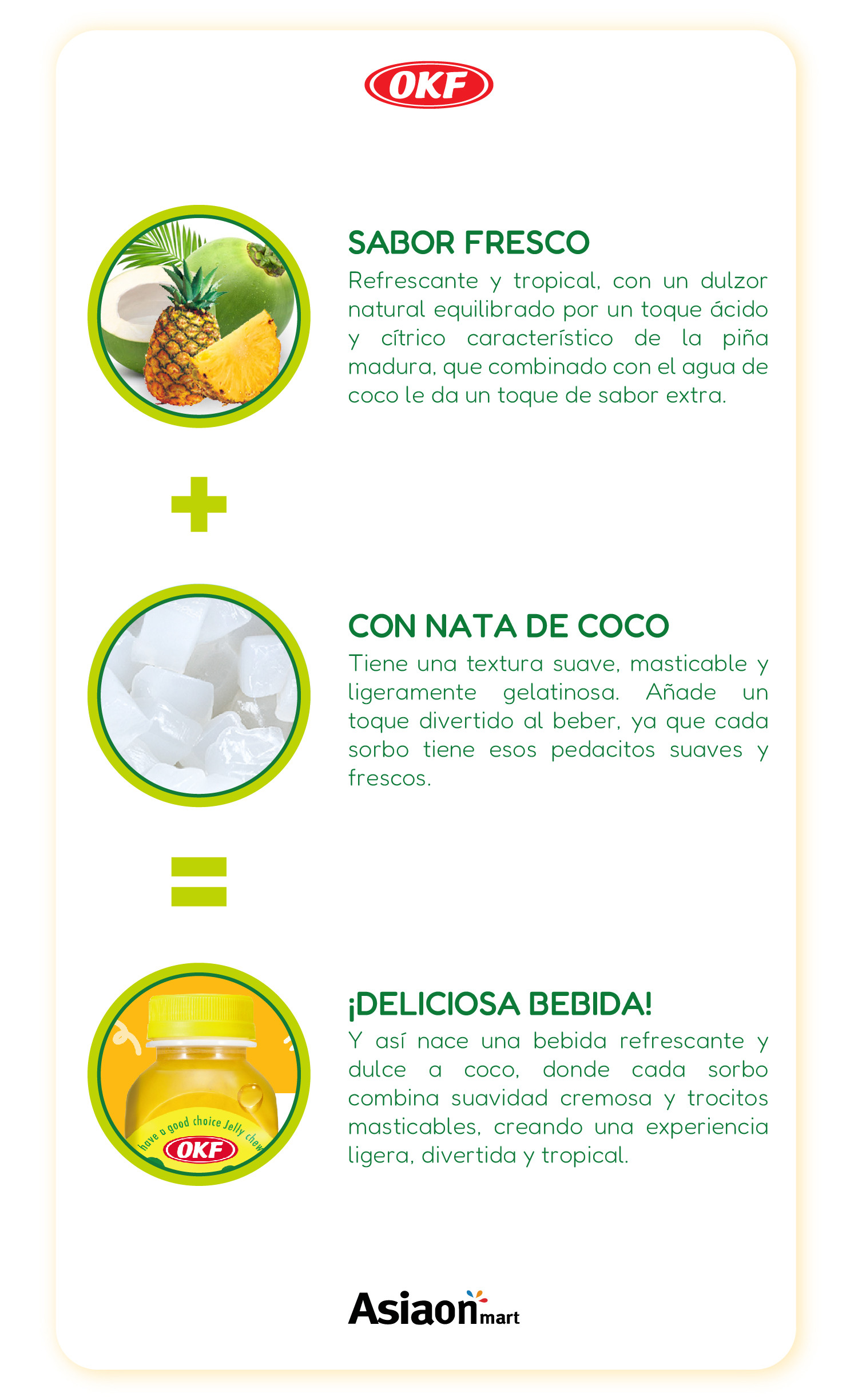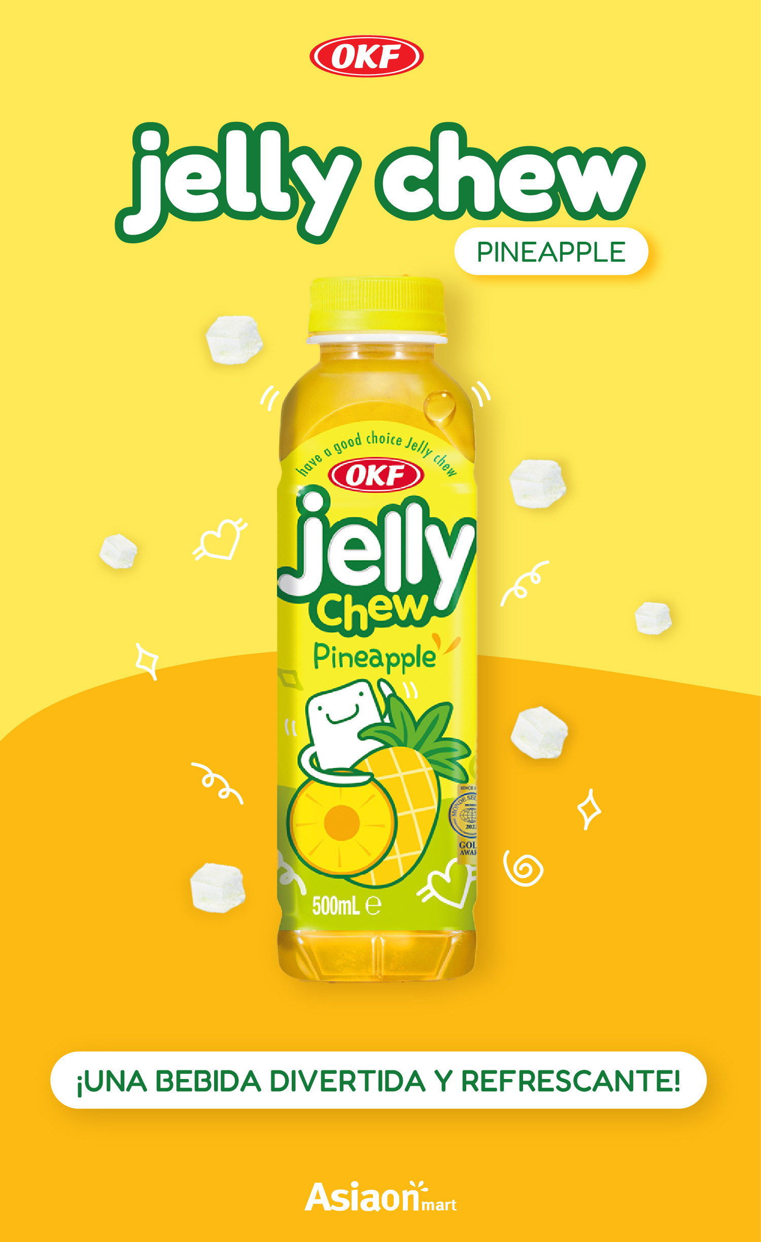 Okf Jelly Chew Sabor Piña 500 ml ofrece una textura divertida y masticable con sabores frutales vibrantes. Elaborada con ingredientes de alta calidad, proporciona una experiencia de refrigerio deliciosa. Disponible en todo el mundo, esta bebida de gelatina única es confiable por su delicioso sabor, conveniencia y atractivo tanto para niños como para adultos.